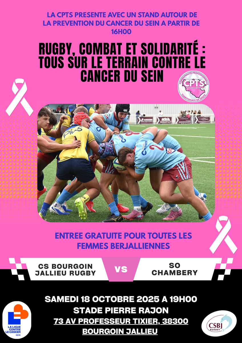 Ce 18 octobre, les Berjalliens et berjalliennes sont sur tous les fronts : sur le terrain pour soutenir le CSBJ Rugby et dans les gradins pour faire reculer le cancer du sein. Ambiance, sport et prévention garanties…